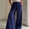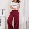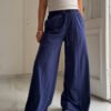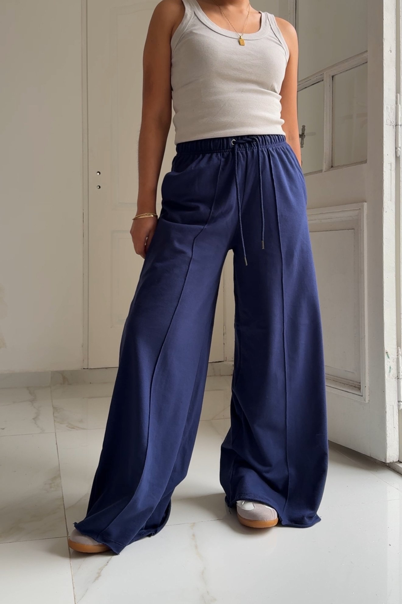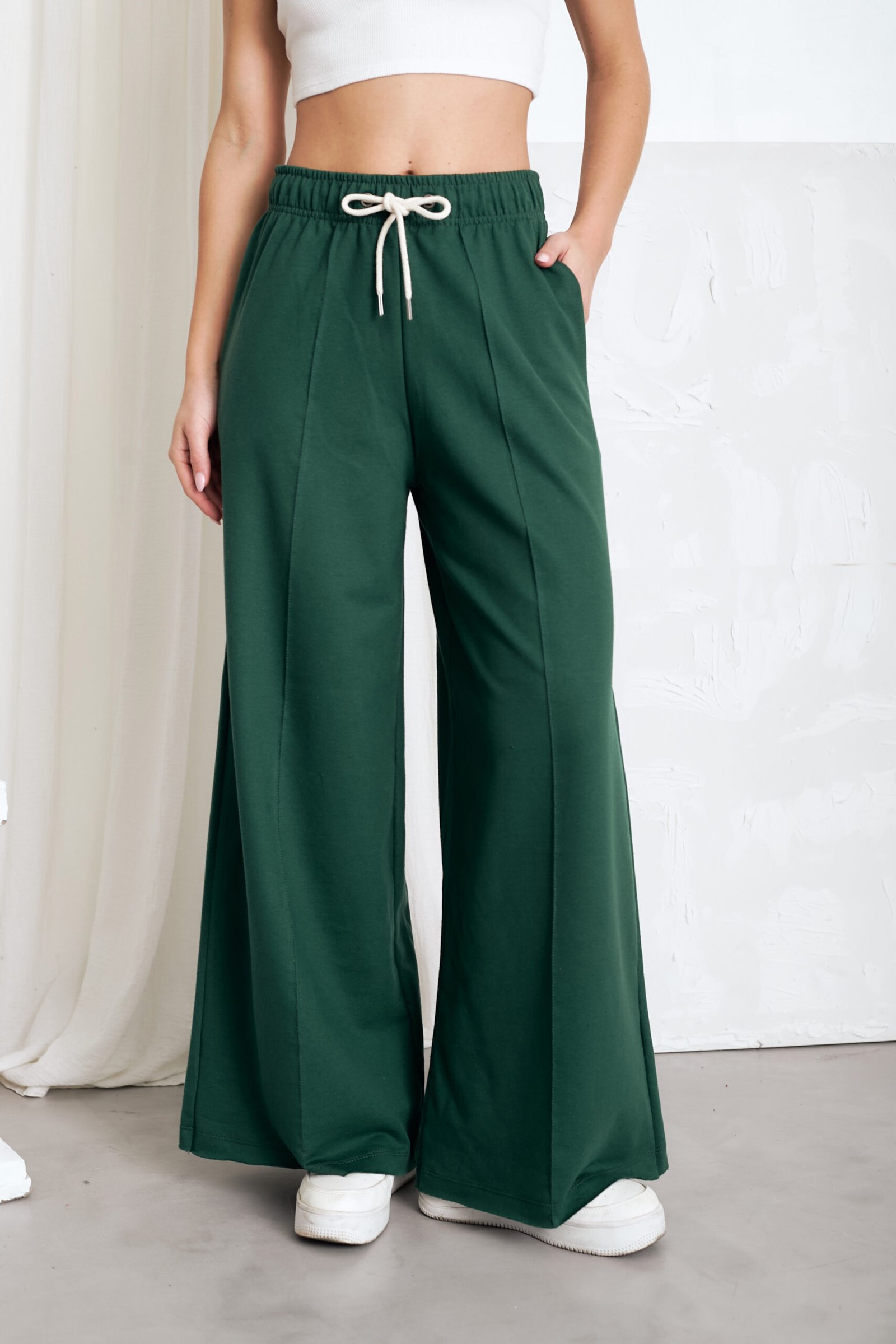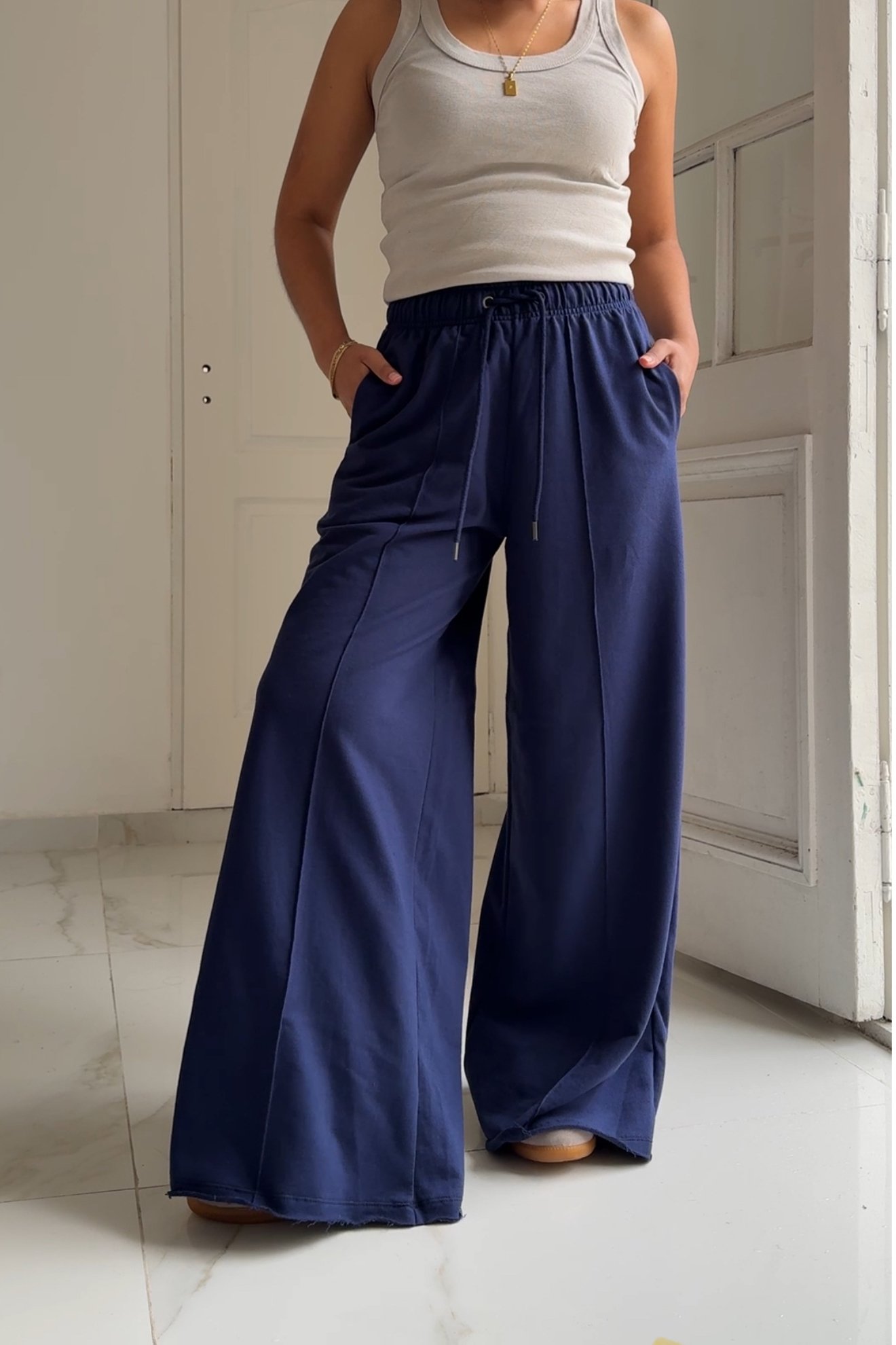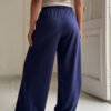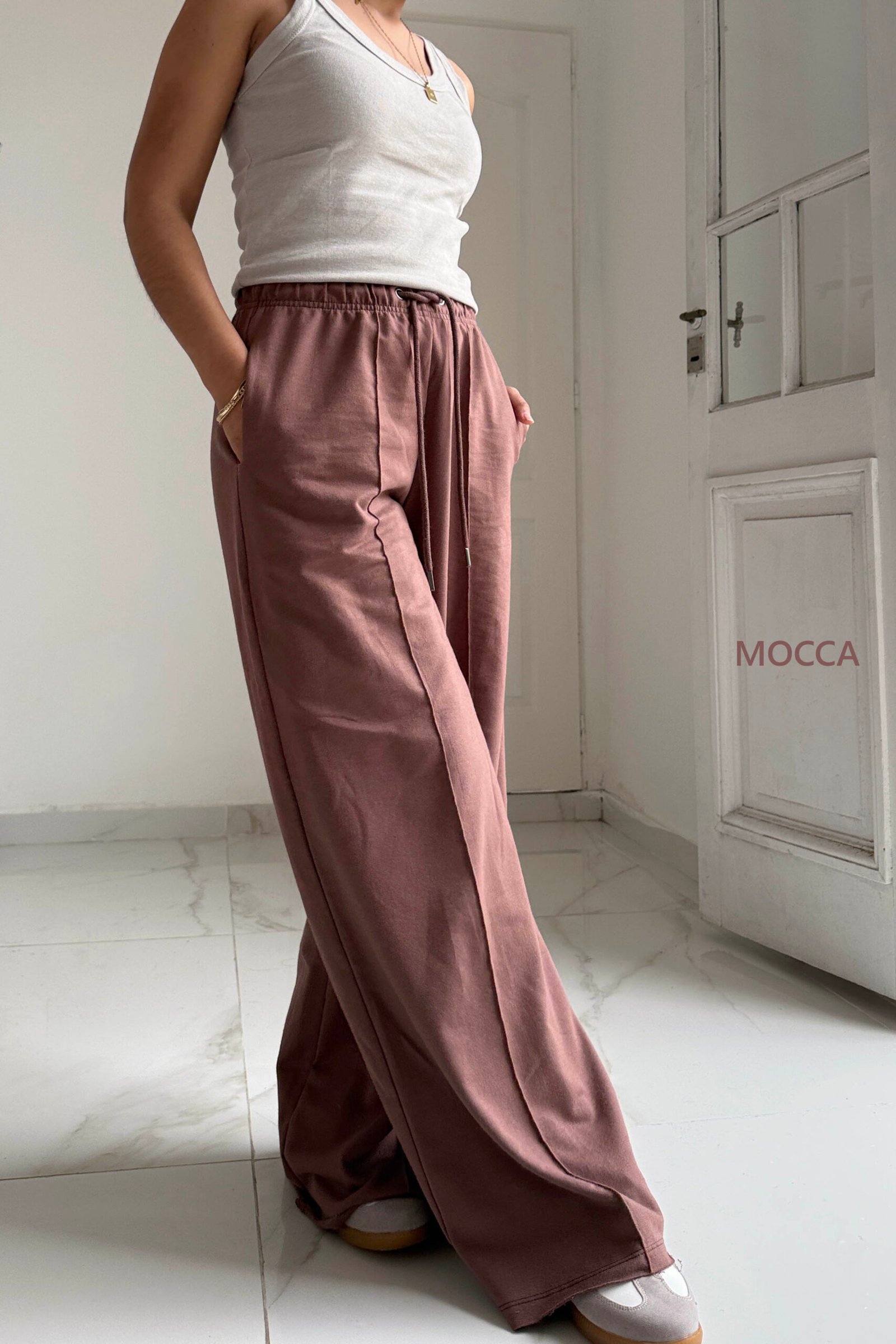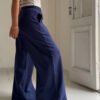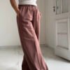 Modelo tiro alto + elástico en la cintura + cordón ajustable + bolsillos delanteros + alforza+ parte inferior sin dobladillo. Tela: algodón rustico liviano peinado.