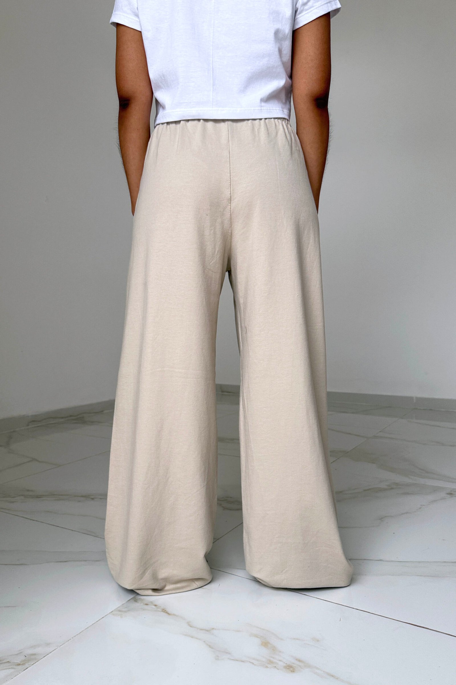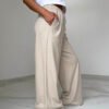 Modelo oversize tiro alto + elástico en la cintura + tira ajustable de la misma tela+ bolsillos delanteros. Tela: algodón rústico peinado liviano