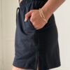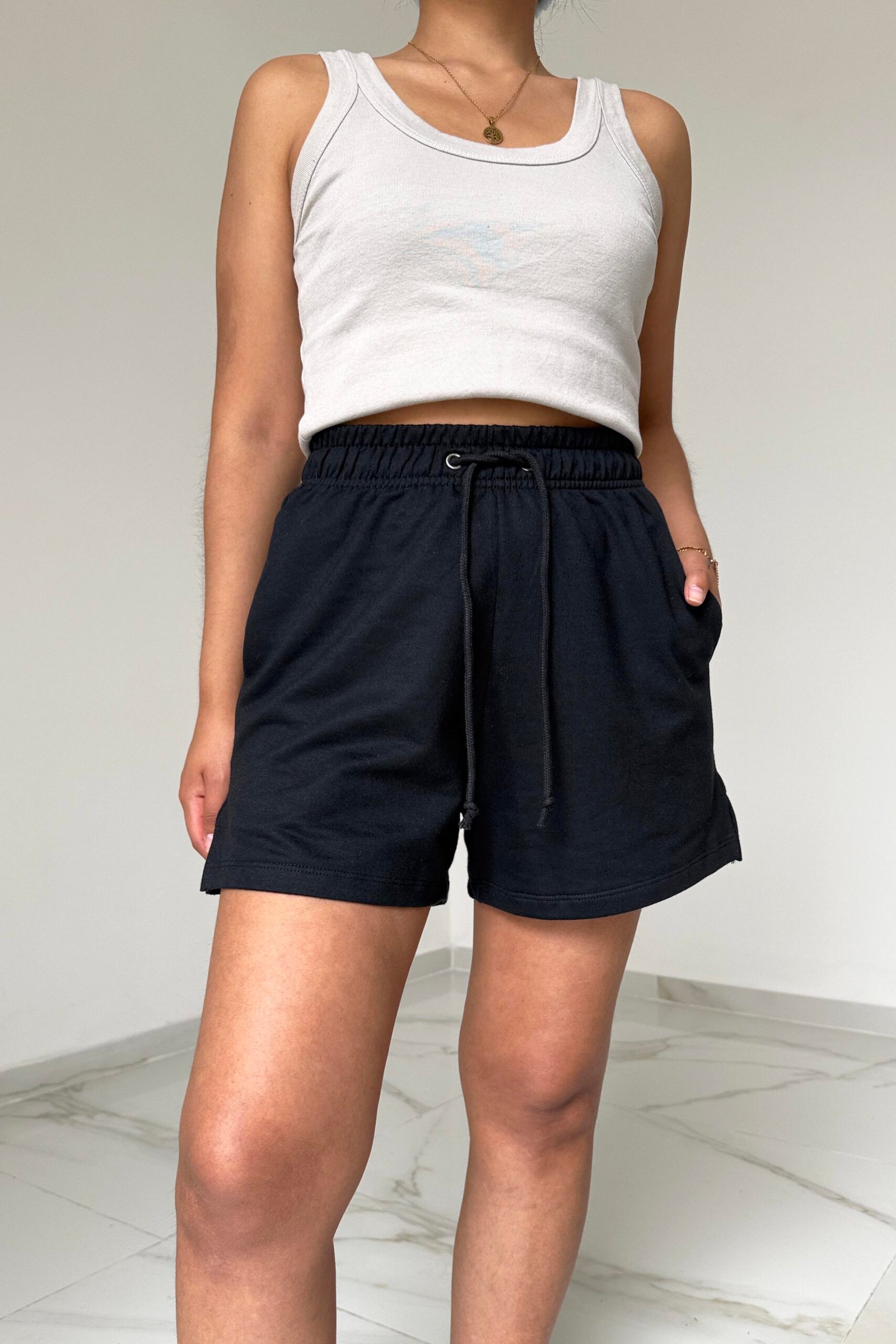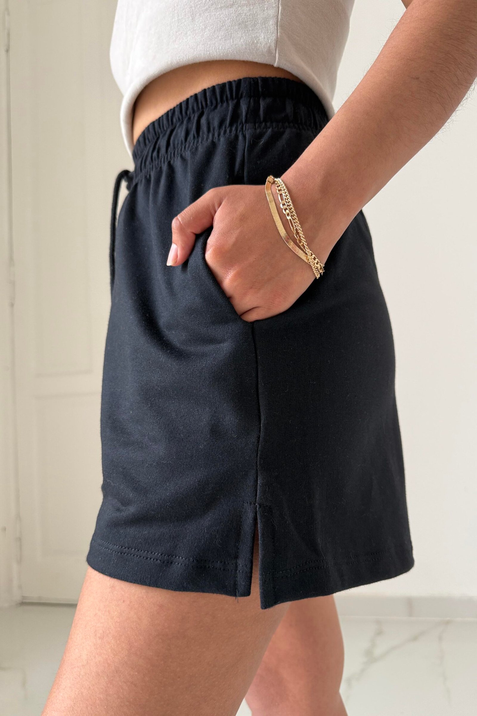 Modelo tiro alto + elástico en la cintura + cordón ajustable + bolsillos delanteros + tajo lateral + bolsillo trasero. Tela: algodón rústico peinado invisible