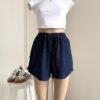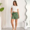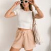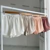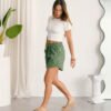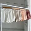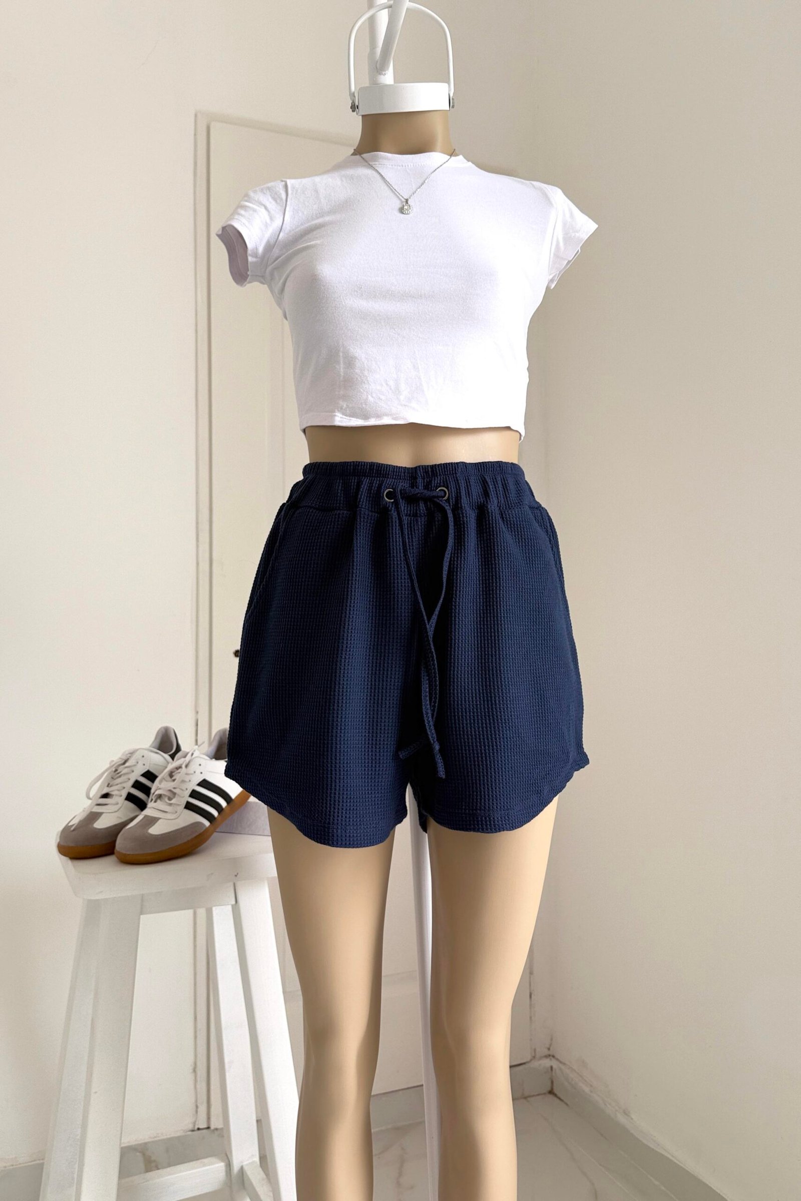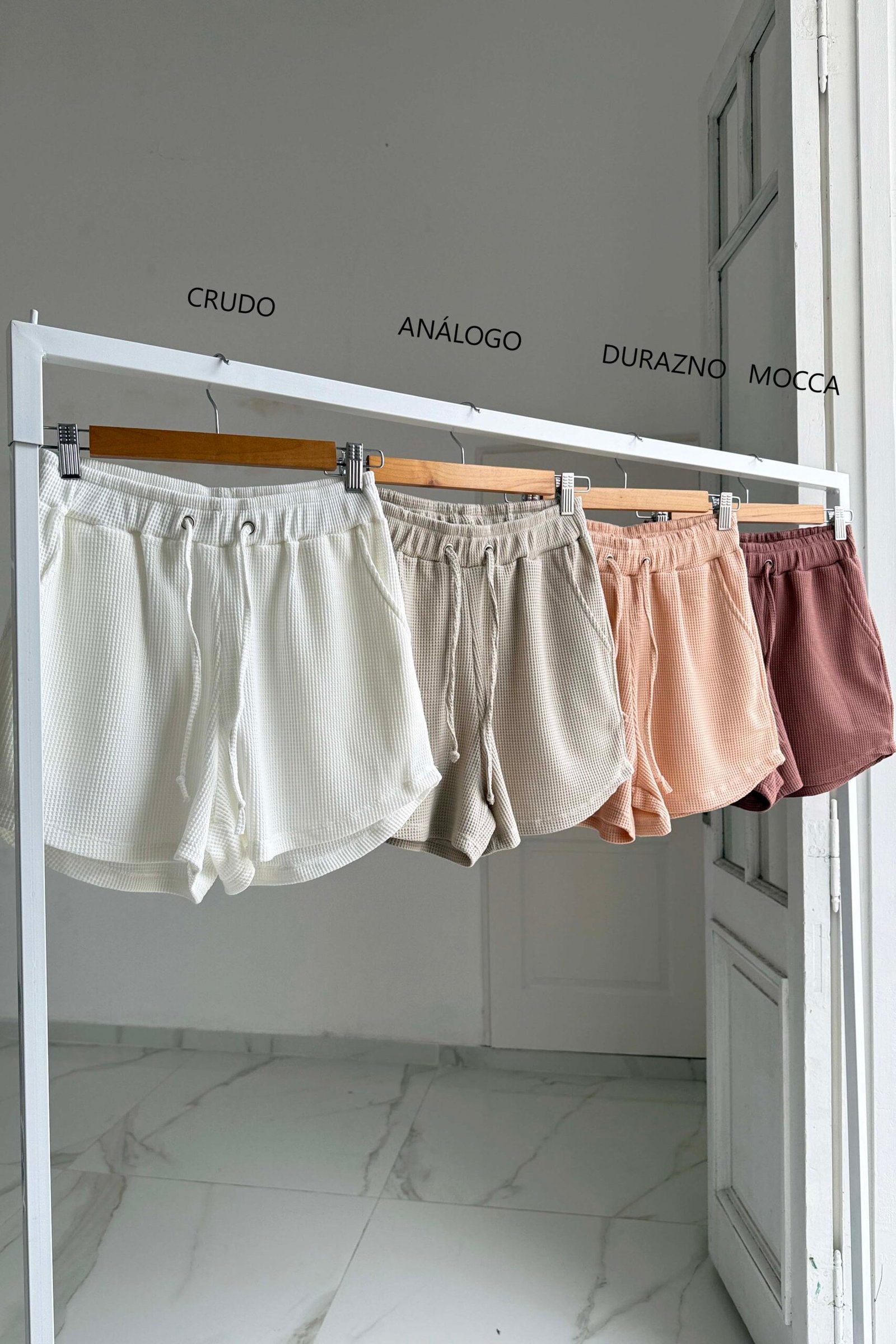 Modelo tiro alto + elástico en la cintura + tira ajustable de la misma tela + bolsillos delanteros. Tela: algodón waffle