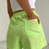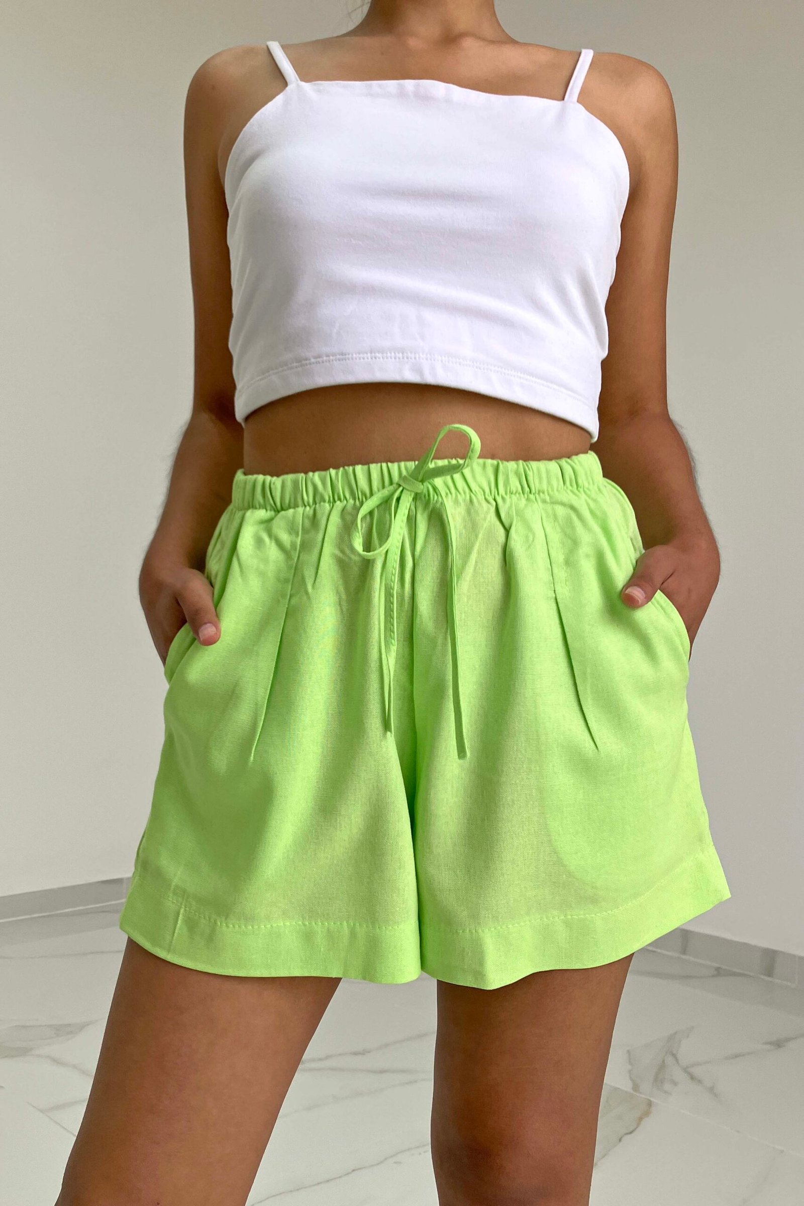 Modelo tiro alto + elástico y pinzas en la cintura +tirita como detalle + bolsillos delanteros y traseros . Tela: lino pantalonero.